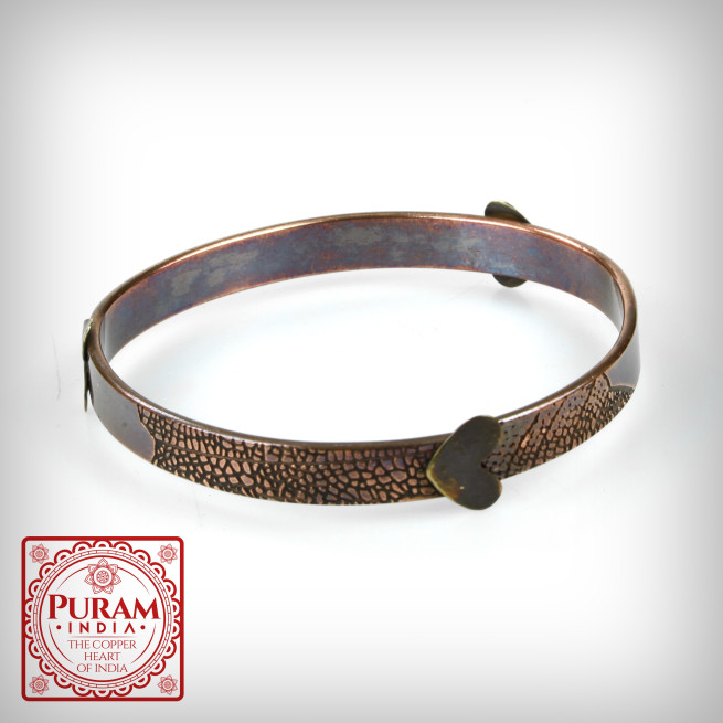 Miedziana bransoletka serduszka 11
