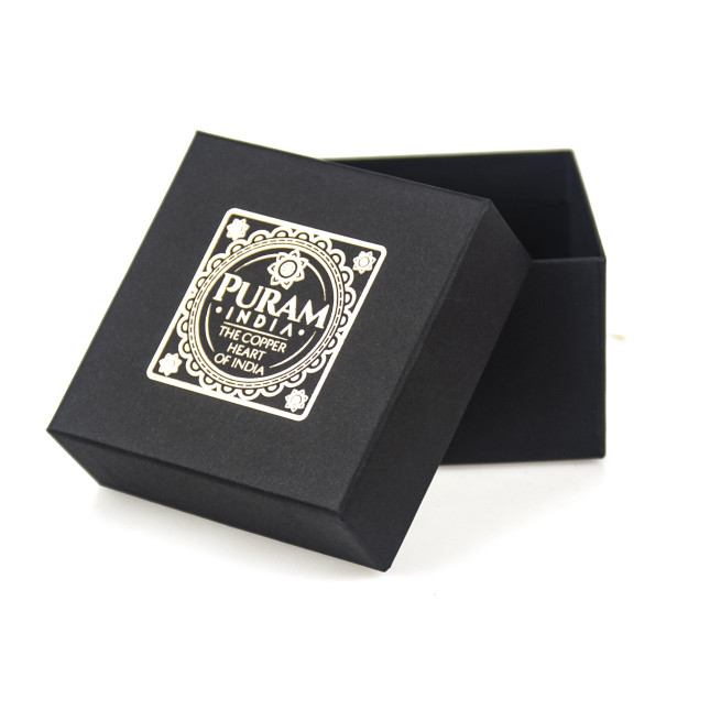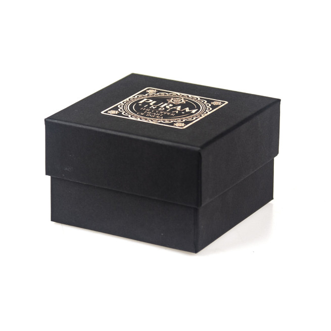 Ozdobne pudełko prezentowe, dedykowane dla biżuterii Puram. Wymiary: 85x85x55mm.