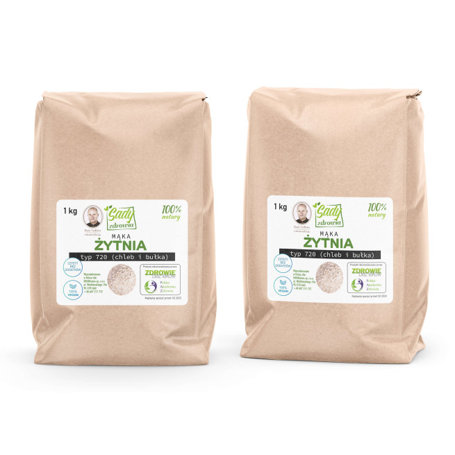 Mąka żytnia typ 720 (chleb i bułka) 100% - 2 kg Produkt Tradycyjnego rolnictwa bez GMO, glifosatu i nawozów sztucznych. Mąka żytnia typ 650 - wytworzona ze starych polskich niemodyfikowanych genetycznie odmian żyta. Idealna do chleba i bułek. Z upraw, bez użycia nawozów sztucznych, chemicznych środków ochrony roślin oraz jakichkolwiek herbicydów - włącznie z glifosatem. Produkt polskiego rolnictwa, bez GMO.