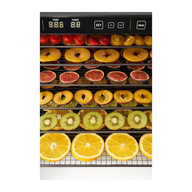 Funkcja podtrzymywania ciepła - wysuszone produkty pozostaną suche przez czas, zanim będziesz mógł je wyciągnąć z dehydratora.