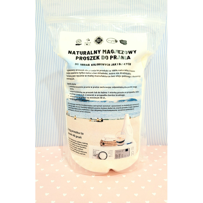 Magnezowy proszek do prania to produkt w 100% naturalny. W swoim składzie zawiera tylko naturalne składniki, które nie drażnią skóry. Tworzony jest bez oleju palmowego i tłuszczy zwierzęcych, jest wegański.