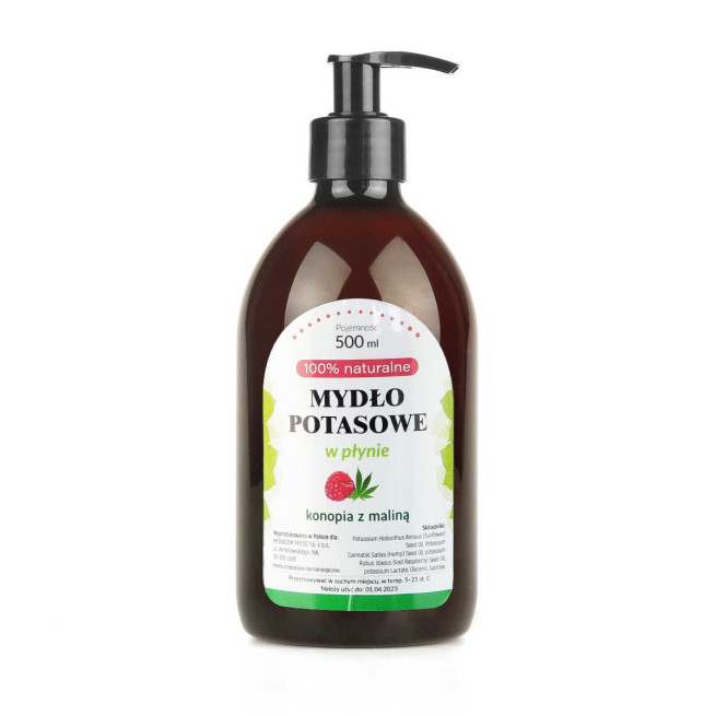 Mydło potasowe konopno- malinowe w płynie do ciała i rąk w szklanym słoiku 500 ml