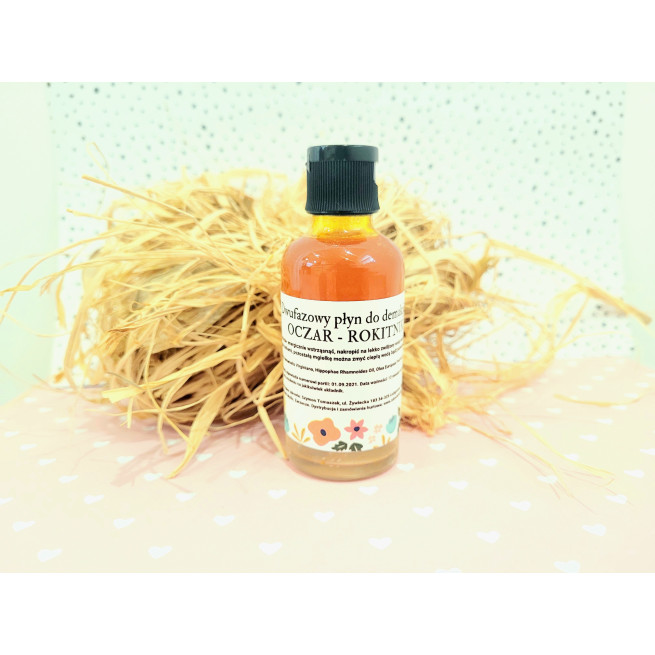 Składniki: Hydrolat Oczarowy, Olej Rokitnikowy, Oliwa z Oliwek, Olej Rycynowy.