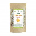 Herbatka "Życie 20+ Energia" - herbatka dla Dwudziestolatka, to specjalnie dobrana kompozycja ziół oraz owoców, takich jak: skórka dzikiej róży, liść miłorzębu, korzeń różeńca, ziele gojnika i bratka, które w naturalny sposób dodadzą witalności i energii, by stawić czoła codziennym wyzwaniom. Regularne picie herbatki zalecamy osobom około 20 roku życia, gdyż jej skład wspomaga umysł i ciało, ułatwia zapamiętywanie, poprawia koncentracje, pobudza i zwiększa odporność na stres, czyli zapewnia wszystko to, co pozwoli czerpać z życia garściami.