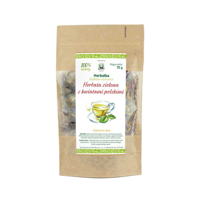 Dodatek kwiatów polskich do zielonej herbaty, nadaje jej delikatny aromat wiosennych, polskich łąk.