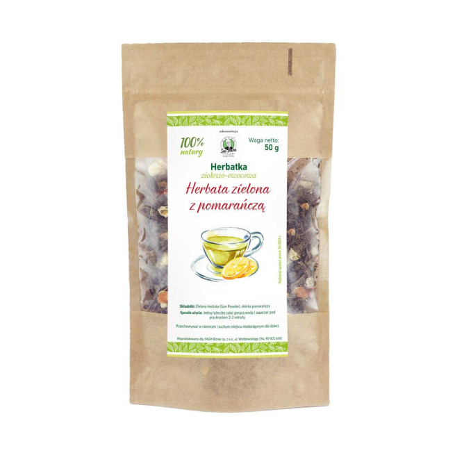 Skład: Zielona herbata (Gun Powder), skórka pomarańczy