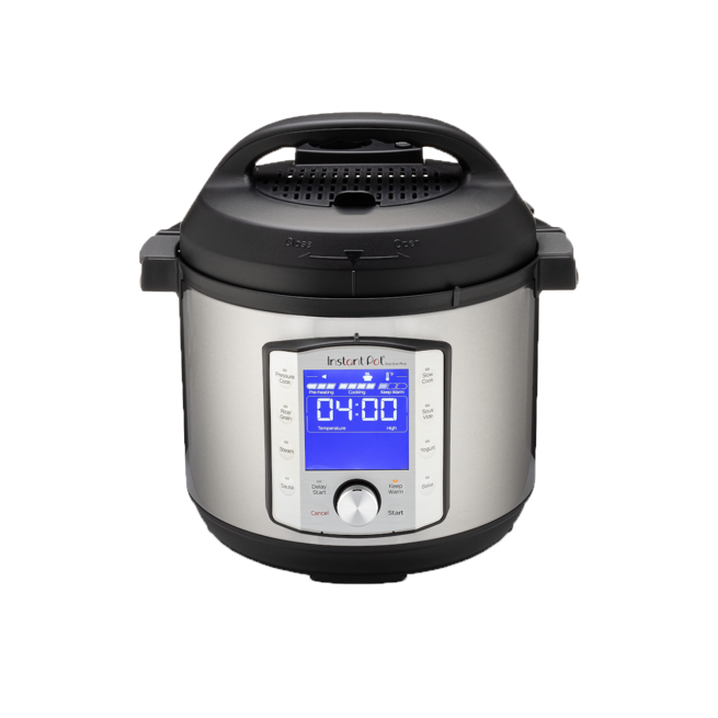 Instant Pot Duo Evo Plus ma również podświetlany wyświetlacz, taki jak Duo Plus, ale jego ustawienia są zmieniane za pomocą pokrętła, które pozwala wybierać spośród gotowych ustawień w inteligentnym programie i dostosowywać ustawienia gotowania. Nie zapomnij nacisnąć przycisku start po dokonaniu wyboru, w przeciwieństwie do modelu Duo Plus, który używa przycisków do wyboru ustawień gotowania i rozpoczyna automatyczne gotowanie po kilku sekundach.