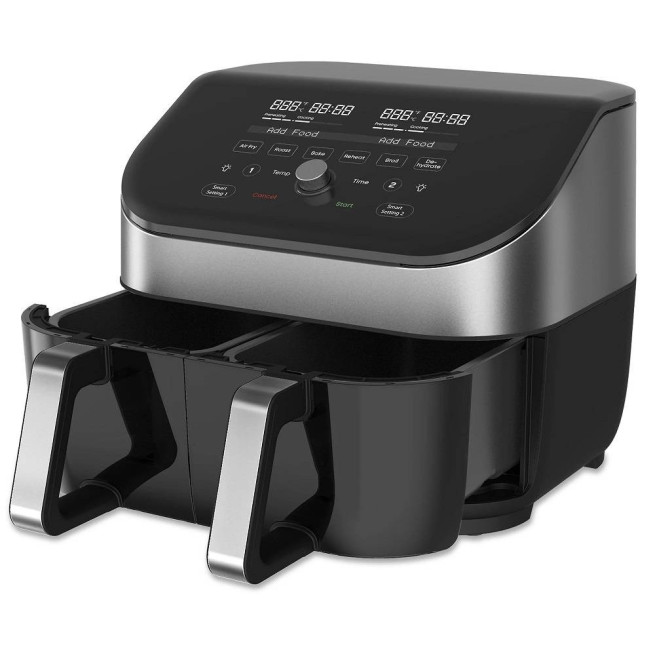 Instant™ Vortex™ Plus Dual to frytkownica powietrzna z mnóstwem przydatnych funkcji, a jednym z nich jest okno ClearCook. Przezroczyste okienko działa idealnie z umieszczonym wewnątrz światłem, dzięki czemu możesz sprawdzić postęp gotowania bez otwierania kosza. Podwójne kosze oznaczają, że możesz gotować podwójnie lub gotować dwie oddzielne potrawy w tym samym czasie.