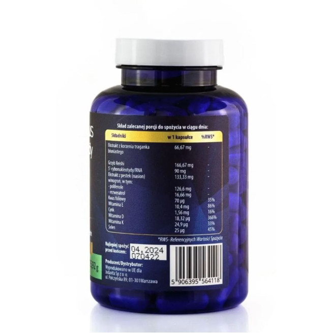 Jeżeli zależy Ci na kompleksowej regeneracji organizmu i przeciwdziałaniu oznakom starzenia (nie tylko tym widocznym – na skórze, ale także tym zachodzącym wewnątrz organizmu) – to produkt dla Ciebie. Kluczem do długowieczności jest odpowiednie tempo regeneracji – wymiany starych komórek na nowe. To właśnie zapewnia suplementacja nukleotydów – podstawowego budulca każdej komórki. Połączenie ich z wyselekcjonowanymi witaminami, minerałami i wyciągami ziołowymi to gotowy i skuteczny zestaw przeciw starzeniu.