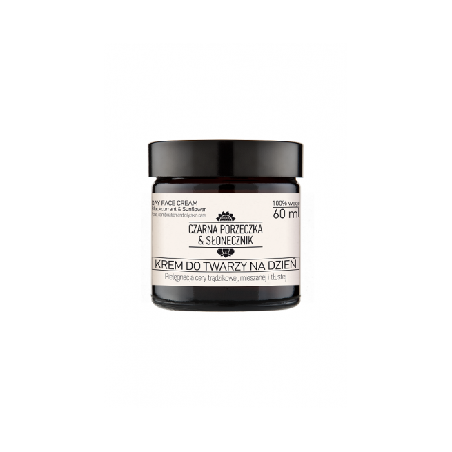 Krem do twarzy na dzień to bezapelacyjnie jeden z podstawowych kosmetyków o kluczowej roli w pielęgnacji twarzy. Stosowany regularnie co rano odpowiednio oddziałuje na skórę, wspomagając proces jej nawilżenia i regeneracji. Nasz krem do twarzy na dzień z czarną porzeczką i słonecznikiem mogą stosować osoby o kilku typach skóry - mieszanej, tłustej oraz trądzikowej. Krem do twarzy na dzień czarna porzeczka & słonecznik to jeden z wielu produktów z serii, którą oparliśmy na dobroczynnym działaniu przede wszystkim tych dwóch naturalnych składników aktywnych.