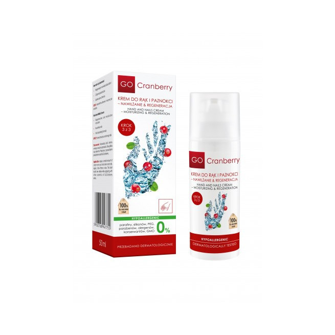 Niewielką ilość kremu wmasuj w ręce i paznokcie. Stosuj kilka razy dziennie. Polecany z pozostałymi produktami z serii GoCranberry.