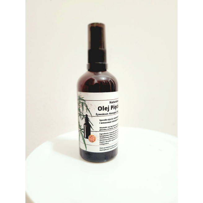 Ingredients: Cannabis Sativa Seed Oil, Helianthus Annuus Seed Oil, Symphytum Officinale Root Extract, Hypericum Perforatum Extract, Chelidonium Majus Extract, Tanacetum Vulgare Extract, Cannabidiol, Melaleuca Alternifolia Leaf Oil, Boswellia Certerii Oil, Camphor Oil, Pinus Sylvestris Leaf Oil, Gaultheria Procumbens Oil, Złoto.