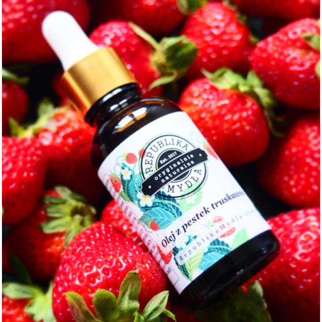 Najwyższej jakości olej pochodzący z rodzinnej tłoczni. Dzięki naturalnej metodzie tłoczenia na zimno posiada wyjątkowy, świeży, lekko owocowy aromat. Poprawia kondycję skóry dojrzałej zwiększając jej elastyczność i redukując przebarwienia. Systematyczne stosowanie oleju z pestek truskawek wpływa pozytywnie na odbudowę bariery ochronnej skóry, która nie dopuszcza do jej odwodnienia. Zalety: bogate źródło witamin A, B, C i E, nienasyconych kwasów tłuszczowych omega 3, 6 i 9 oraz przeciwutleniaczy. Posiada szybką zdolność wchłaniania, skutecznie nawilża. Doskonały do skóry wrażliwej i tłustej, dojrzałej, jak również z rozszerzonymi porami. Delikatnie sciągający, perfekcyjny dodatek do kremu bądź serum.