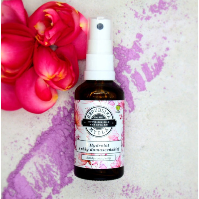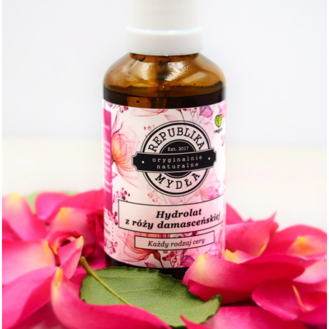 Hydrolat pozyskany z ekologicznych kwiatów róży damasceńskiej.