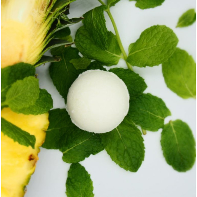 Nawilżająca, musująca kula kąpielowa o bogatym aromacie ananasa i orzeźwiającej mięty.
