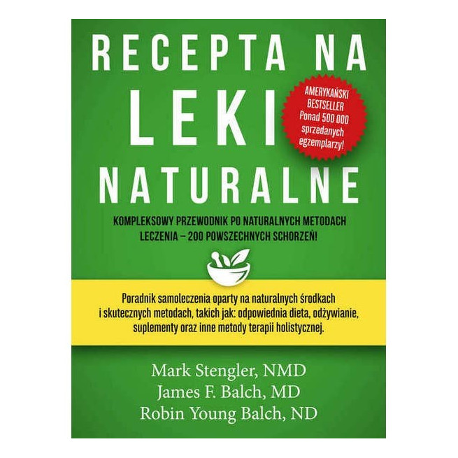Recepta na leki naturalne to książka, która podbiła rynek amerykański–została sprzedana w setkach tysięcy egzemplarzy.Publikacja ta to ponad 1000-stronicowe kompendium wiedzy na temat skutecznych metod walki z chorobami stosowanymi we współczesnej medycynie. Metody te poparto obszerną, rzetelnie opracowaną bibliografią naukową. Jest to efekt wielu lat praktyki lekarskiej autorów książki,a ich wiarygodność uwierzytelnia holistyczne podejście do ludzkiego organizmu. Traktują ciało jak nierozłączną całość, jako system precyzyjnie połączonych naczyń, które wzajemnie na siebie oddziałują. Rozważnie i z ogromnym wyczuciem łączą najlepsze konwencjonalne i naturalne metody leczenia. Alfabetyczny katalog chorób przedstawiony jest prostym, zrozumiałym językiem. Opisuje ponad 200 różnych dolegliwości–od tych najpoważniejszych po przypadłości mniejszej wagi:cukrzycę, miażdżycę i choroby serca, boreliozę, depresję, nowotwory, kamicę nerkową, chorobę Alzheimera, otyłość, choroby przewodu pokarmowego oraz wiele innych, które obejmują coraz szersze grono współczesnej populacji. Oprócz charakterystyki poszczególnych schorzeń w książce przedstawiono ich objawy, pierwotne przyczyny, a także wykaz testów oraz badań koniecznych do postawienia właściwej diagnozy. Najwięcej miejsca autorzy poświęcają leczeniu, aby pacjent mógł trwale wrócić do zdrowia.Trzej wybitni lekarze: Mark Stengler, James F. Balch i Robin Young Balch prezentują szerokie horyzonty i brak uprzedzeń. Błyskotliwie sumują niemal stulecie badań medycyny konwencjonalnej.Autorzy książki z dużą uwagą podchodzą również do kuracji spoza kręgów cywilizacji europejskiej i anglosaskiej, stosowanych z powodzeniem od wielu lat. Wracają też do terapii, które w świecie zdominowanym przez koncerny farmaceutyczne straciły popularność, choć ich skuteczność jest bezdyskusyjna.Tym, co wyróżnia Receptę od podobnych pozycji wydawniczych jest siedem super recept umieszczonych pod opisem każdej z chorób. Opisano w nich siedem najlepszych naturalnych sposobów, które stosowane łącznie lub wybiórczo–pomogą szybciej i skuteczniej przeciw działać degradacji naszego organizmu. Wykorzystywane na całym świecie od wieków ziołolecznictwo,zdobycze medycyny Dalekiego Wschodu, akupunktura i akupresura, a także hydro-i aromaterapia,homeopatia i bodywork w połączeniu z odpowiednią dietą i suplementacją tworzą potężny zbiór broni przeciwko naszym niewidzialnym i podstępnym wrogom–chorobom.