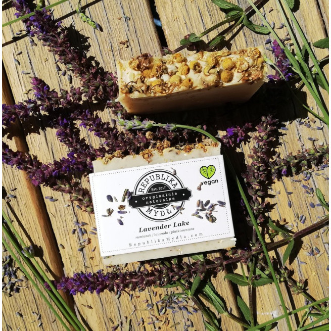 Lavender Lake powstało na bazie wywaru z koszyczków rumianku, a swoją nazwę wzięło od naturalnego olejku lawendowego, który odpowiada za charakterystyczny ziołowo-kwiatowy aromat naszego mydła. Rzecz jasna oprócz olejku znajdziecie tutaj cały szereg dobroci.