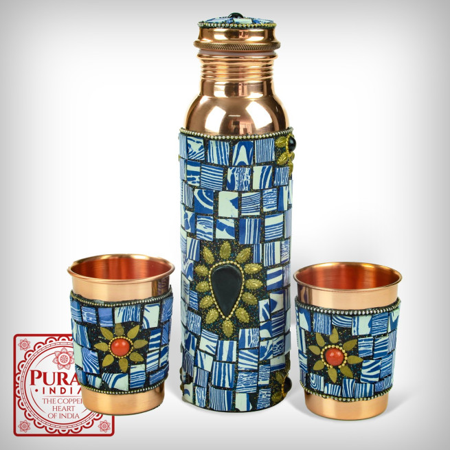 Miedziane naczynia pochodzą z Indii, gdzie od tysiącleci są stosowane do przechowywania wody. Miedź posiada bowiem właściwości biobójcze i bakteriostatyczne. Według tradycyjnej medycyny ajurwedyjskiej naczynie miedziane wpływa na redukcję wirusów, bakterii i grzybów zawartych w wodzie. Dodatkowo jonizują ją. Obecnie antybakteryjne zalety miedzi zaczęły być już nawet wykorzystywane w szpitalach – wprowadza się m.in. samodezynfekujące się łóżka miedziane, klamki itp.(1)
