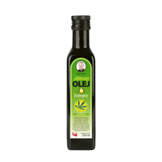 Świeży naturalny olej konopny jest wytwarzany z konopi siewnych. Prawie w 80% składa się z niezbędnych nienasyconych kwasów tłuszczowych (NNKT) – kwasu linolowego z grupy kwasów tłuszczowych omega-6 i kwasu linolenowego z grupy omega-3 występujących w idealnych proporcjach.W oleju konopnym znajdziemy także kwasy: oleinowy, palmitynowy, gamma-linolenowy oraz aminokwasy, karoten, minerały, witaminy: A, D, E i K, fitosterole i fosfolipidy.