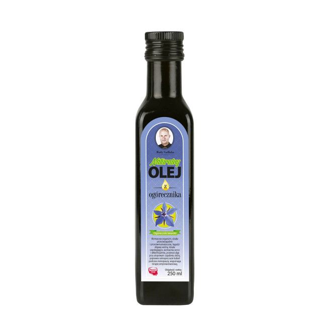 Olej z ogórecznika tłoczony „na zimno” w naszej olejarni to produkt w 100% naturalny. Tłoczony w prasach ślimakowych wolnoobrotowych w temperaturze do 40 °C. Nie zawiera żadnych dodatków chemicznych ani konserwantów. Jest nieoczyszczony i nierafinowany, dzięki czemu zachowuje wszystkie składniki odżywcze, decydujące o jego zdrowotnych właściwościach. Olej z ogórecznika tłoczy się z nasion ogórecznika lekarskiego, jest to roślina o pięknych niebieskich kwiatach. Olej z ogórecznika posiada żółto – zieloną barwę, w smaku jest delikatny o lekkiej orzechowej nucie.