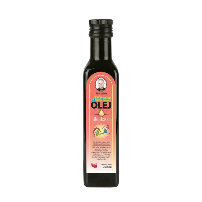 W razie jakichkolwiek wątpliwości przed wprowadzeniem nowego produktu do diety, warto zasięgnąć porady lekarza. Nasz olej dla dzieci zawiera w sobie olej rzepakowy, słonecznikowy (mogą być podawane już od 4go m.ż), olej z pestek dyni (powyżej 6go m.ż) oraz olej z czarnuszki (powyżej 6go m.ż). W związku z powyższym nasz olej można podawać dziecku powyżej 6go m.ż lecz w śladowych ilościach (kilka kropel-3 krople), powyżej 1 r.ż do 3 r.ż – ¼ łyżeczki, powyżej 3 r.ż do 5 r.ż – pół łyżeczki, zaś powyżej 5 r.ż – jedną łyżeczkę.