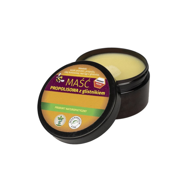 Składniki: wosk pszczeli, propolis, olej kokosowy, wyciąg z glistnika.