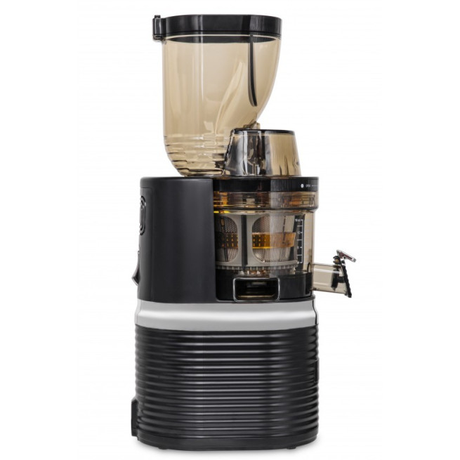 Niska prędkość, dokładne dopasowanie elementów odpowiedzialnych za proces ekstrakcji, wzmocniona konstrukcja sita i ślimaka oraz ulepszony kształt kanału odprowadzania wytłoczyn pozwalają na uzyskanie perfekcyjnie klarownej i aksamitnej konsystencji soku.