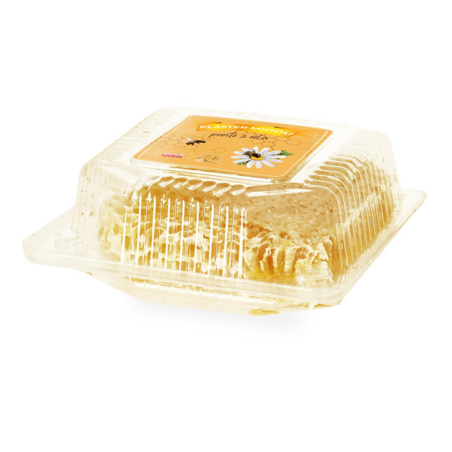 Ramka sekcyjna z żywym plaster miodu prosto z ula, bez ręki pszczelarza! Opakowanie zawiera plaster miodu pszczelego prosto z ula, który pozyskany bez interwencji produkcyjnej pszczelarza wyjęty prosto z ula, umieszczony w opakowaniu.