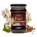 Miód gryczany jest miodem o wyjątkowo bogatym smaku, charakterystycznym zapachu kwiatów gryki oraz ciemnej, bursztynowej barwie.