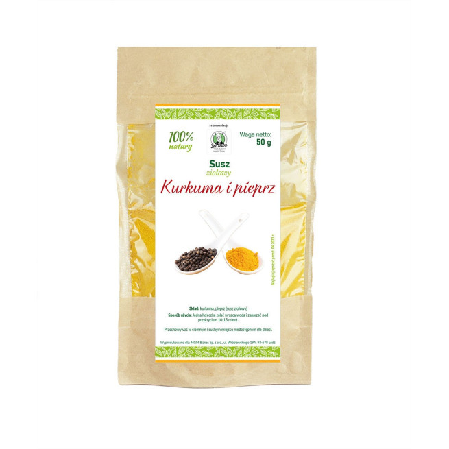 Kurkuma z pieprzem to mieszanka, która nada niepowtarzalnego smaku orientalnym daniom, zupom i mięsom. Ponadto warto wspomnieć, że takie połączenie składników poprawia trawienie, przyswajanie składników odżywczych, podkręca metabolizm i wspomaga odchudzanie! Kurkuma wzmocniona pieprzem, wchłania się w większym stopniu, a my możemy czerpać z tej przyprawy większe korzyści.