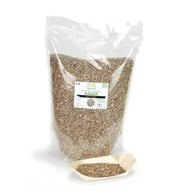 Produkt tradycyjnego rolnictwa bez GMO, glifosatu i nawozów sztucznych. Niepalona, tzw. biała kasza gryczana, pochodząca z polskich upraw. Nie zawiera GMO, glifosatu, a przy jej uprawie nie stosowano żadnych nawozów sztucznych, ani jakichkolwiek chemicznych środków uprawy roślin.
