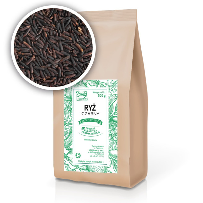 Czarny ryż to rzadka odmiana jednego z najczęściej spożywanych pokarmów świata. Ryż po ugotowaniu nabiera zabarwienia ciemnofioletowego, dzieje się tak za sprawą antocyjanów (naturalnych roślinnych barwników). Antocyjany mają silne właściwości antyoksydacyjne, spowalniają procesy starzenia się organizmu. Czarny ryż jest źródłem dobrze przyswajalnego białka, zawiera też błonnik wspierający pracę układu pokarmowego. W jego skład wchodzą witaminy z grupy B oraz witaminy A, E, a także mikroelementy: żelazo, cynk, miedź. Ryż czarny jest pożywny i sycący, lekko kleisty, świetnie nadaje się do sushi oraz risotto.