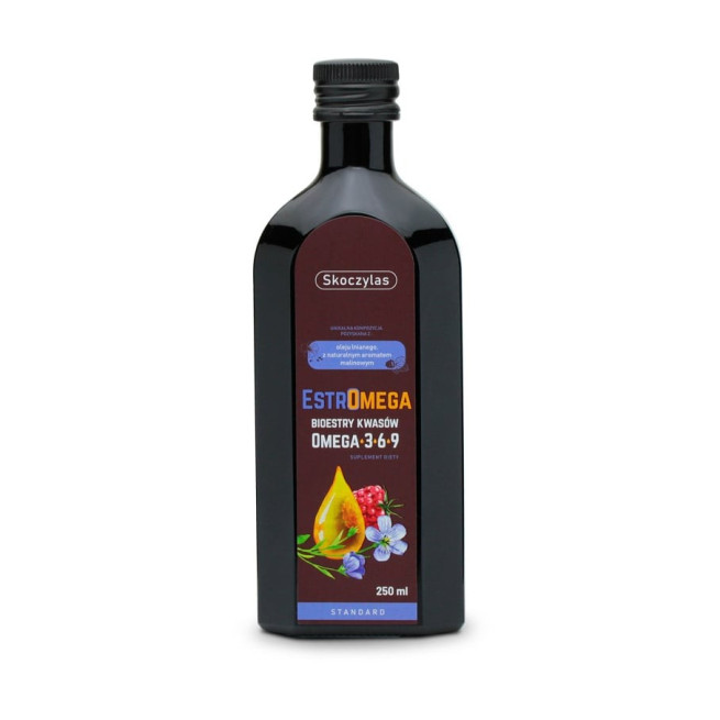 Estromega zawiera roślinne kwasy tłuszczowe Omega 3,6,9. Forma estrów etylowych zapewnia znakomitą biodostępność oraz wysoką bioretencję kwasów tłuszczowych Omega 3,6,9 w organizmie człowieka.