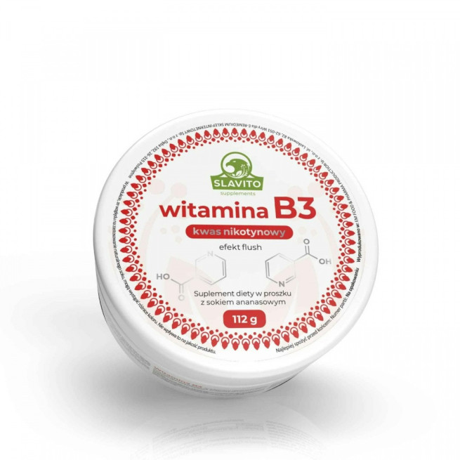 UWAGA! Przyjmowanie witaminy B3 (kwasu nikotynowego) powoduje rozszerzenie naczyń krwionośnych, może wywołać efekt FLUSH (przekrwienie, delikatna wysypka, swędzenie, zaczerwienienie skóry) ustępujący po paru godzinach.