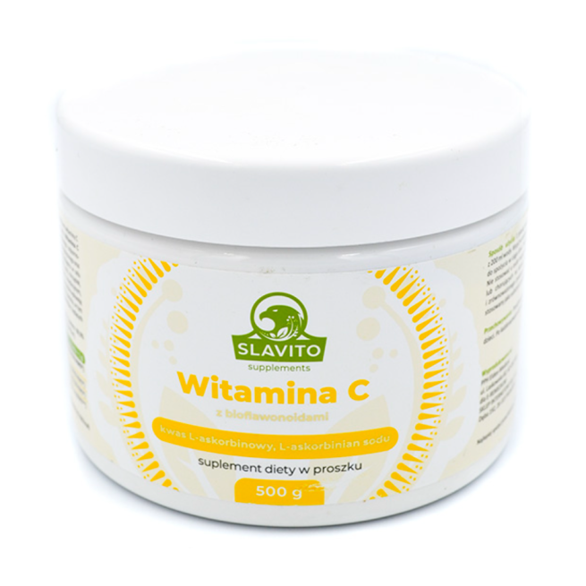 Składniki: Kwas L-askorbinowy (witamina C), L-askorbinian sodu (zawiera 88,9% witaminy C).