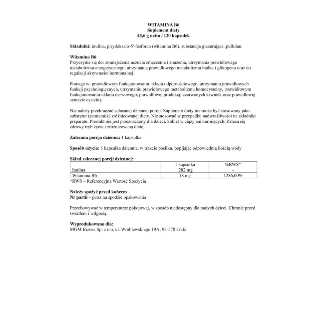 Składniki: inulina, pirydoksalo-5'-fosforan (witamina B6), substancja glazurująca: pullulan.