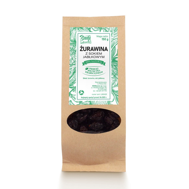 Żurawina jest owocem o kwaskowato-cierpkim smaku, który sok jabłkowy znakomicie niweluje. Dzięki temu żurawinę w takiej formie można jeść samą jako bardzo zdrową przekąskę, a także dodawać do ciast i deserów.