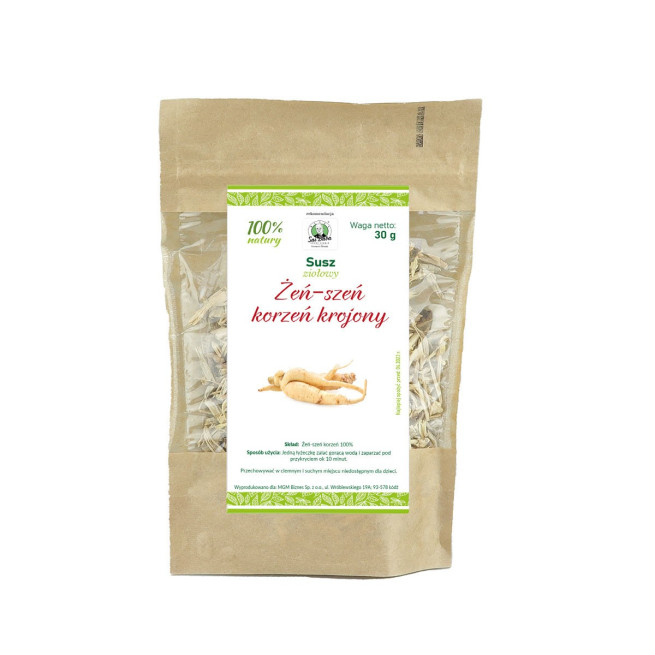 Skład: Żeń-szeń syberyjski korzeń krojony 100% (susz ziołowy)